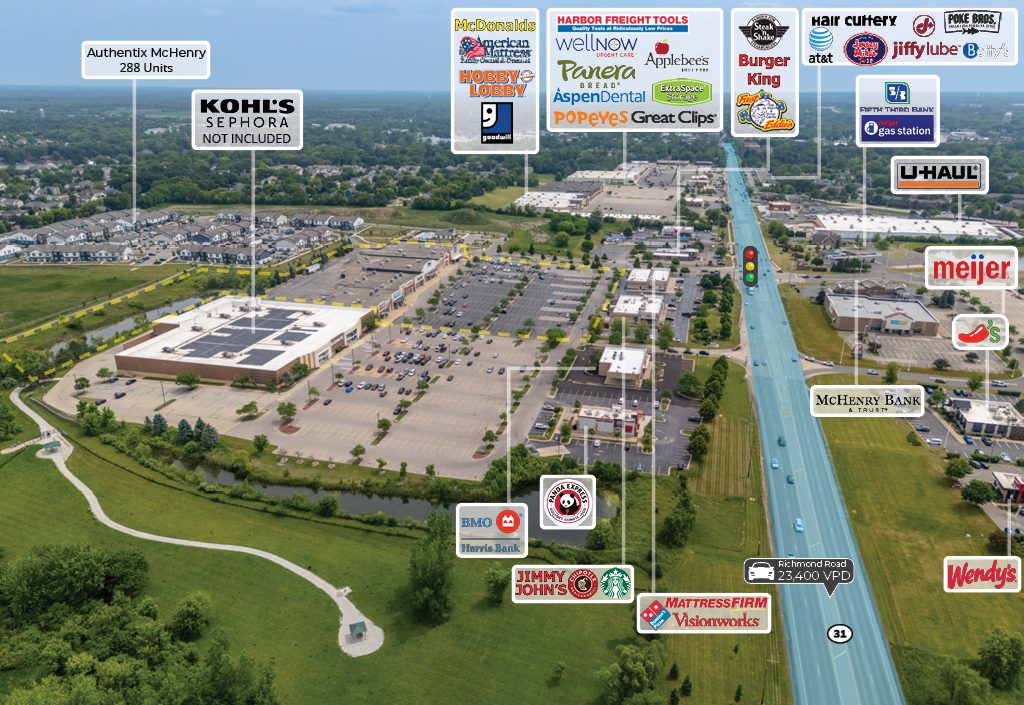• Located in the Epicenter of McHenry’s Regional Retail Corridor | Surrounded by 1.8 Million Square Feet of Retail