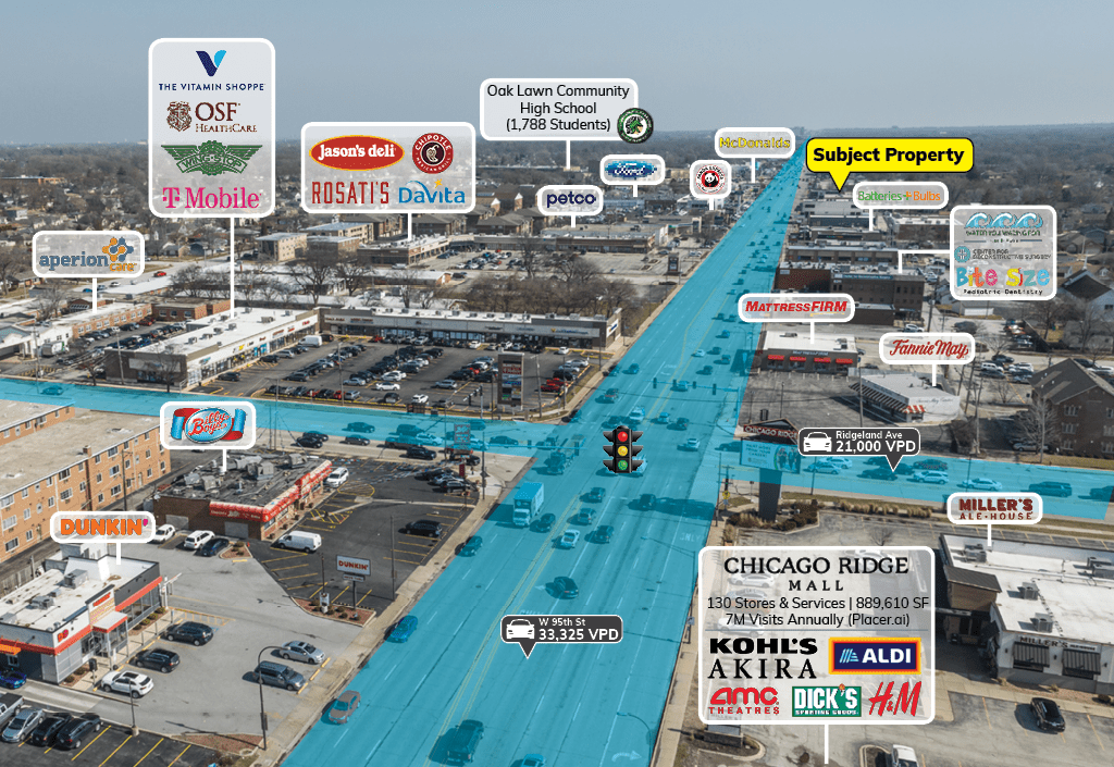 - Situated Along Oak Lawn’s Busiest Corridor | Surrounded by Attractive Demographics with a Large Population and Workforce
