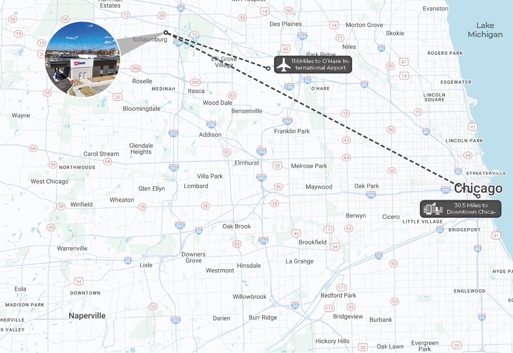 - 0.9 miles from Woodfield Mall, which is the largest and most visited shopping mall in Illinois