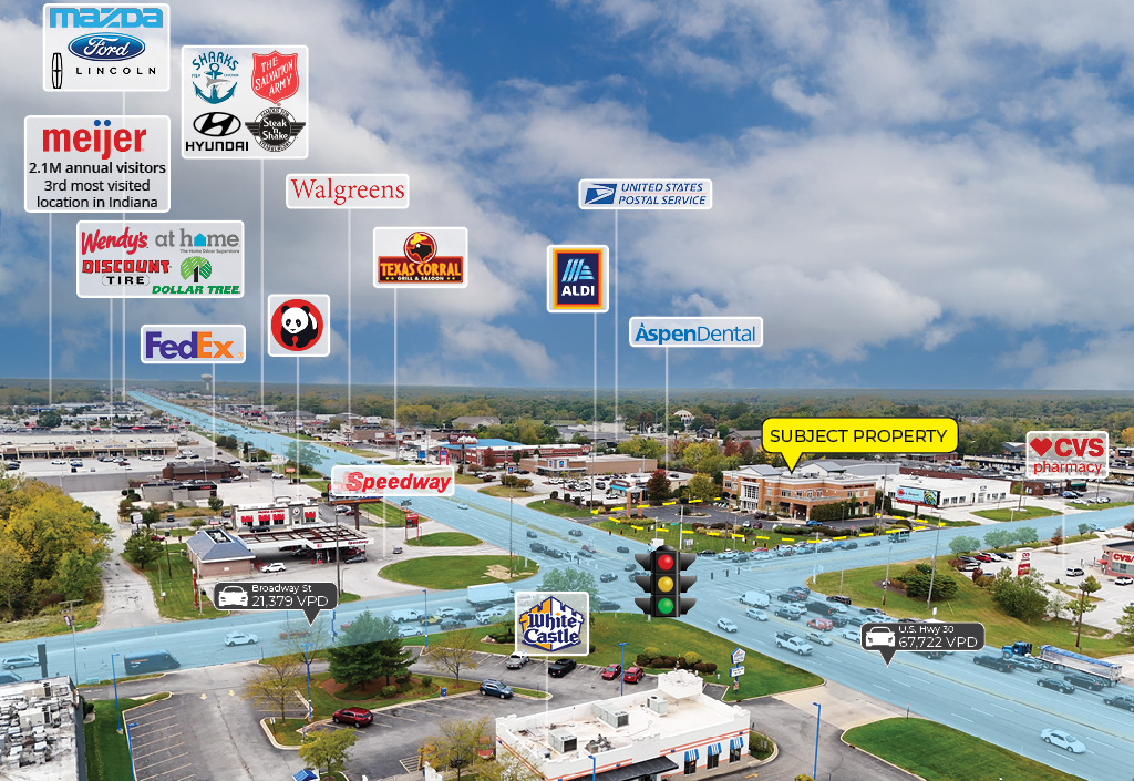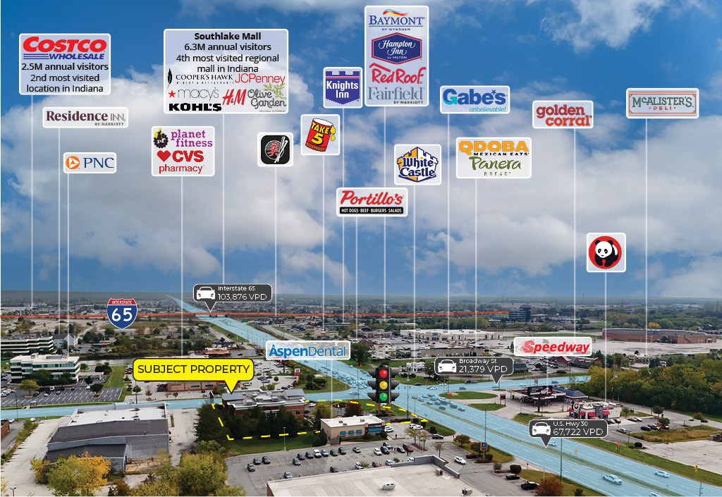- 1.4 miles from Southlake Mall, the 4th most visited regional mall in Indiana, which attracts 6.3 million annual visitors (Placer.ai)